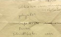 Die Kölner Polizei hat bei zwei Verdächtigen einen Spickzettel gefunden, auf denen sie sich die deutsche Übersetzung für die wichtigsten arabischen Anmachsprüche notiert hatten.