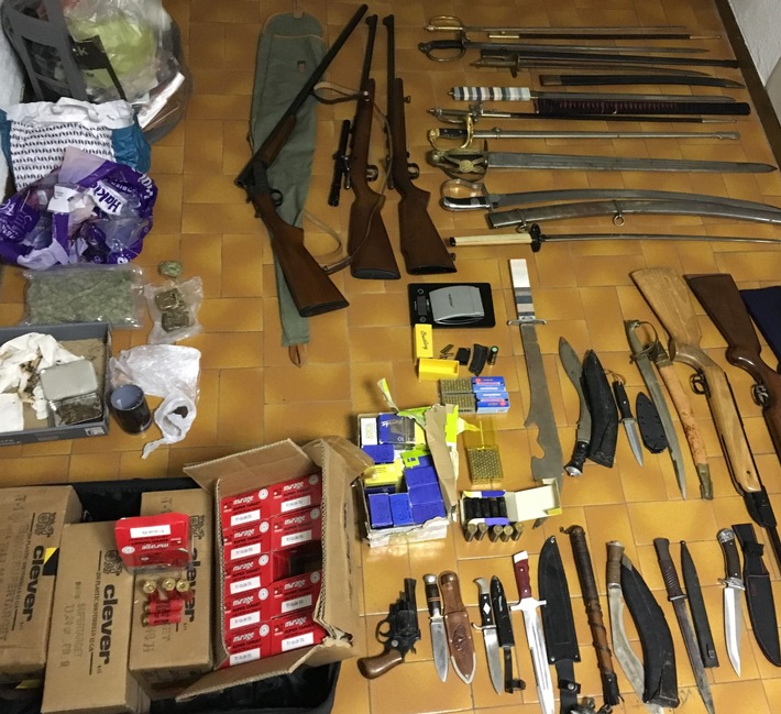 Am Morgen des 17.01.2019 haben Beamte der Kriminalinspektion Neustadt und des SEK RLP in Kirchheim das Haus eines türkischstämmigen Mannes aufgrund eines richterlichen Beschlusses durchsucht. Dabei konnten u.a. Cannabisprodukte sowie eine Vielzahl an Schuß- und Stichwaffen sichergestellt werden.