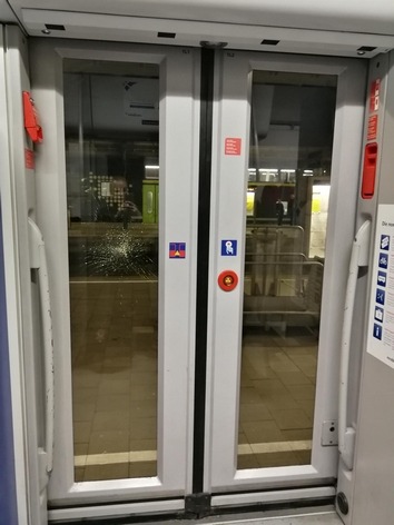 Gestern Abend wurden Bundespolizisten über eine beschädigte Zugtür informiert. Offensichtlich hatte ein Mann im abfahrbereiten Zug der Nordbahn mit einer Tüte gegen eine Zugtür geschlagen und diese beschädigt (siehe Bild). Im Rahmen einer Nahbereichsfahndung konnte aufgrund der Personenbeschreibung und einer mitgeführten Plastiktüte auch ein Tatverdächtiger gestellt werden. Er hatte jedoch die mitgeführte Tüte umgedreht, sodass der Schriftzug nicht sofort erkennbar war. Die Beamten konnten durch eine Gegenüberstellung mit dem Zugbegleiter den 33-jährigen Afghanen als Tatverdächtigen identifizieren. Er hatte mit der Plastiktüte, in dem sich ein Metallbräter befand, gegen die Zugtür geschlagen. Der Mann muss nun mit einer Strafanzeige wegen Sachbeschädigung rechnen.