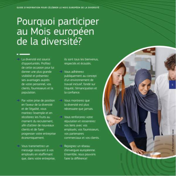 Eurabia marschiert ! In ihrem ” Inspirationsleitfaden zur Feier des Europäischen Monats der Vielfalt” stellt die Europäische Kommission eine Frau mit einem auffälligen religiösen Zeichen, einem islamischen Schleier, dar